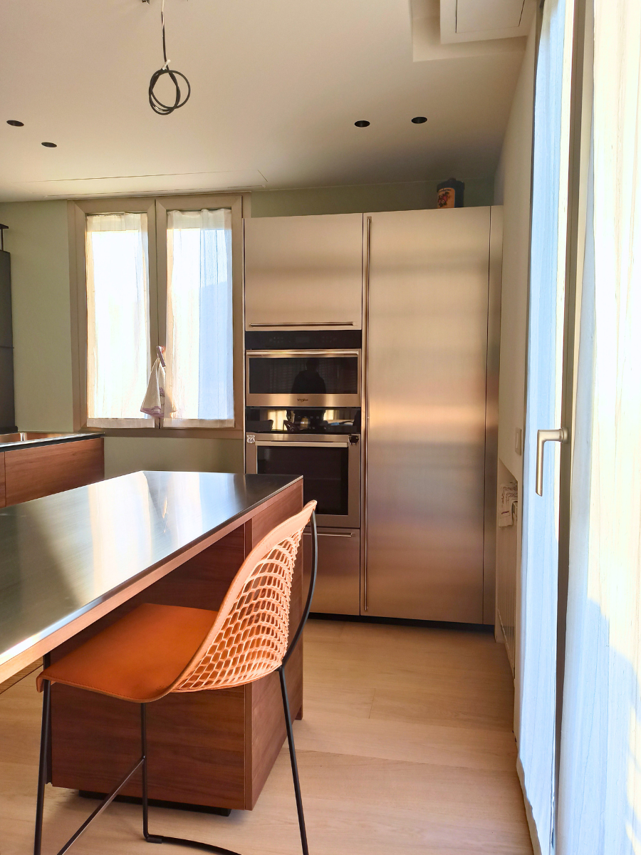 Materiali naturali e caldi abbinati ad elevate tecnologie sono stati i punti focali nella scelta della cucina, insieme all’attenzione per la sostenibilità ambientale dei prodotti scelti.