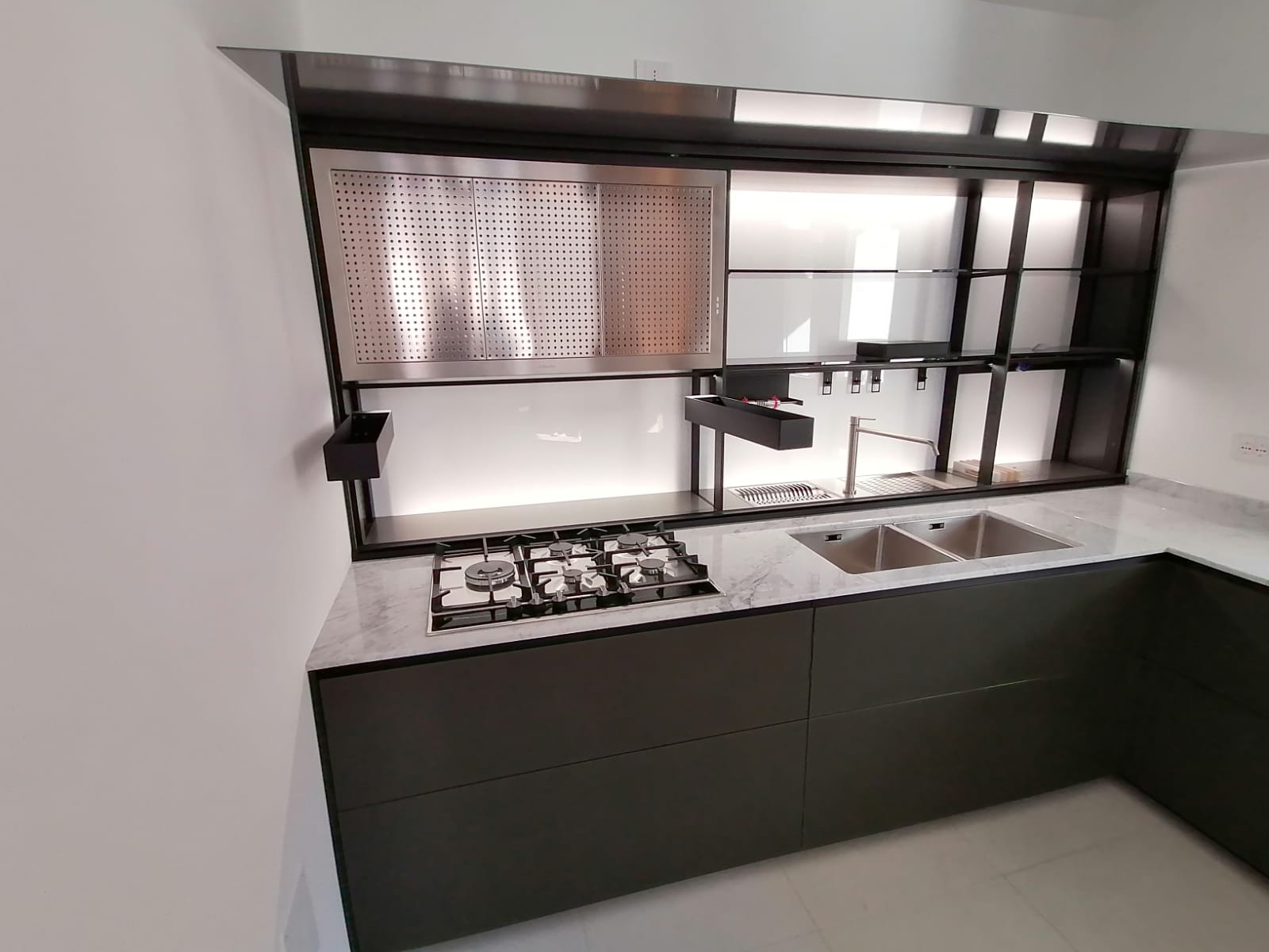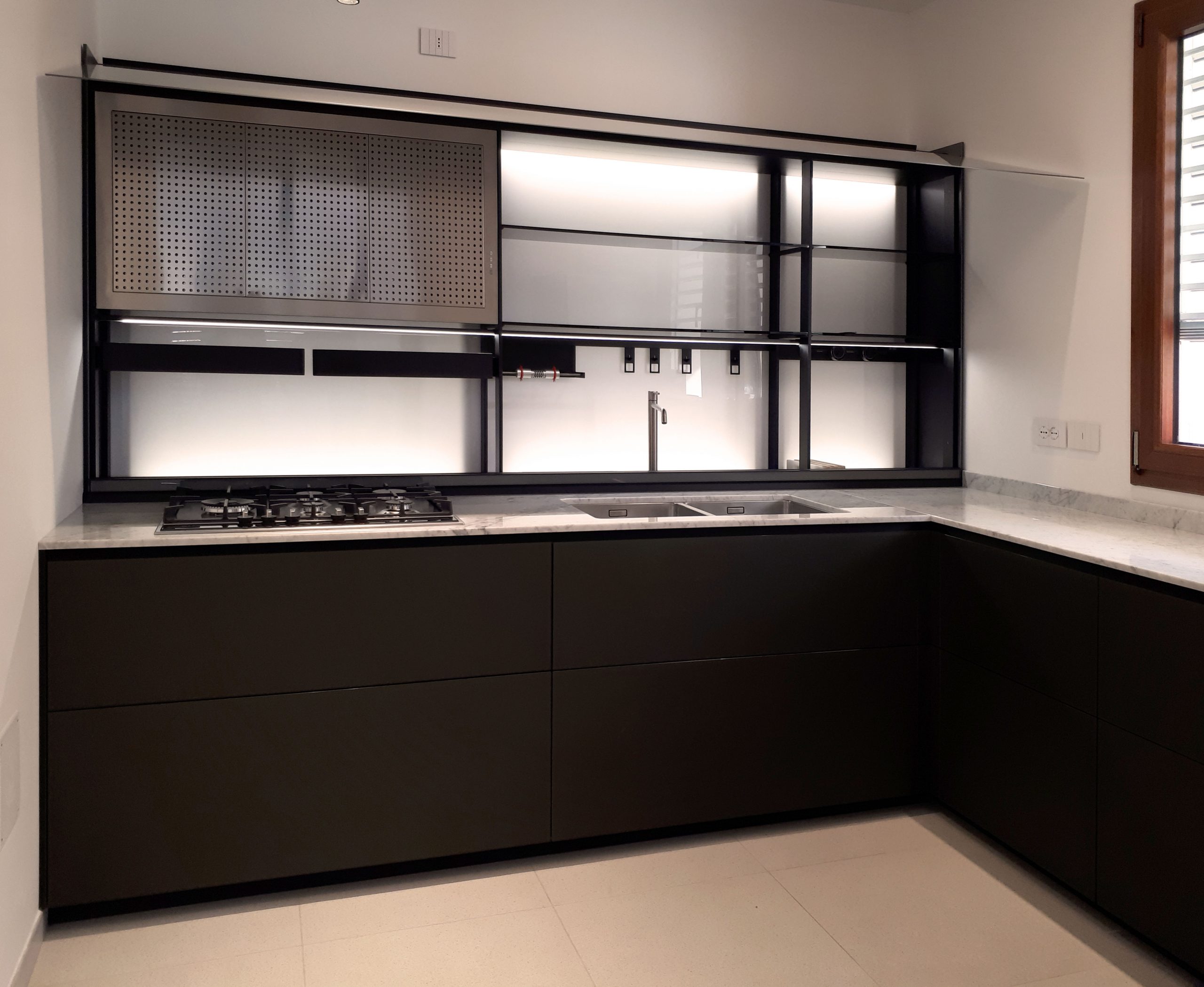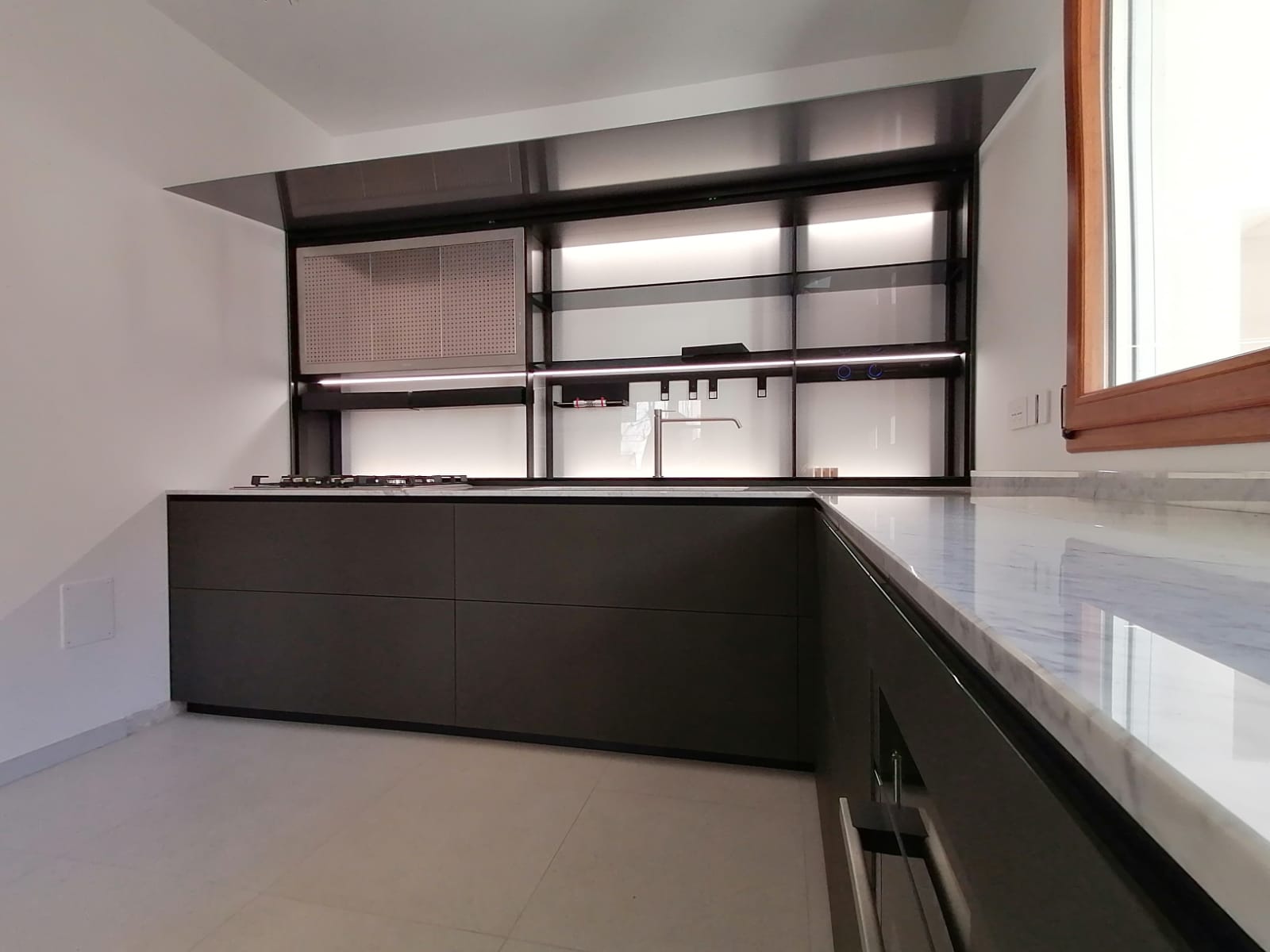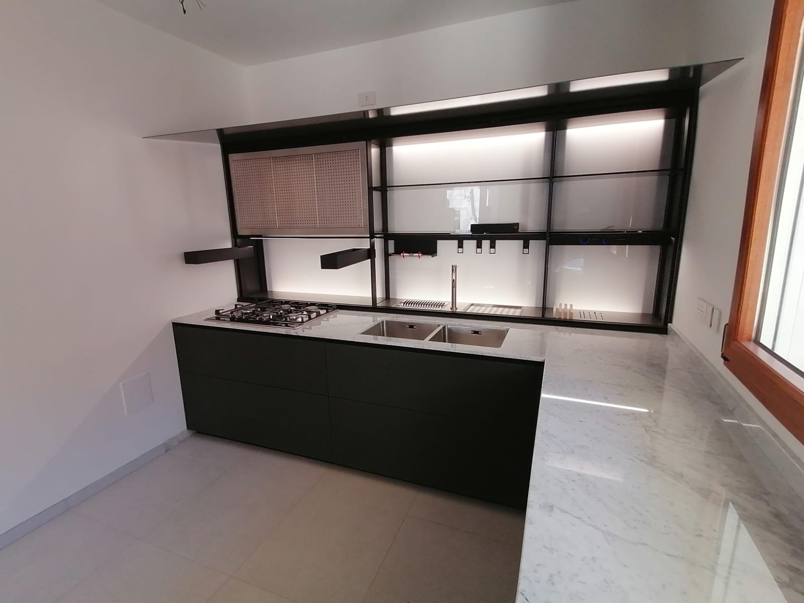 Per la cucina, il cliente ha scelto il modello “Artematica” di Valcucine, attrezzato con il “New Logica System”.