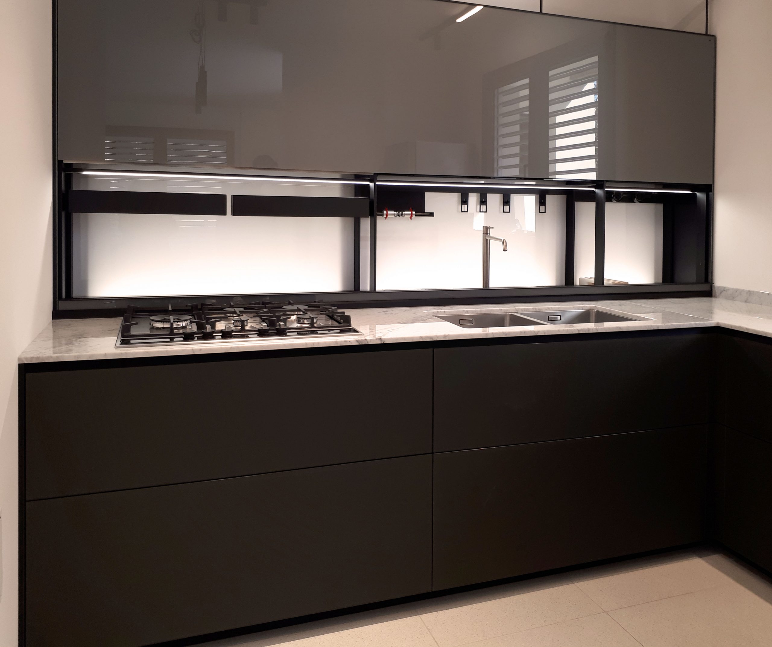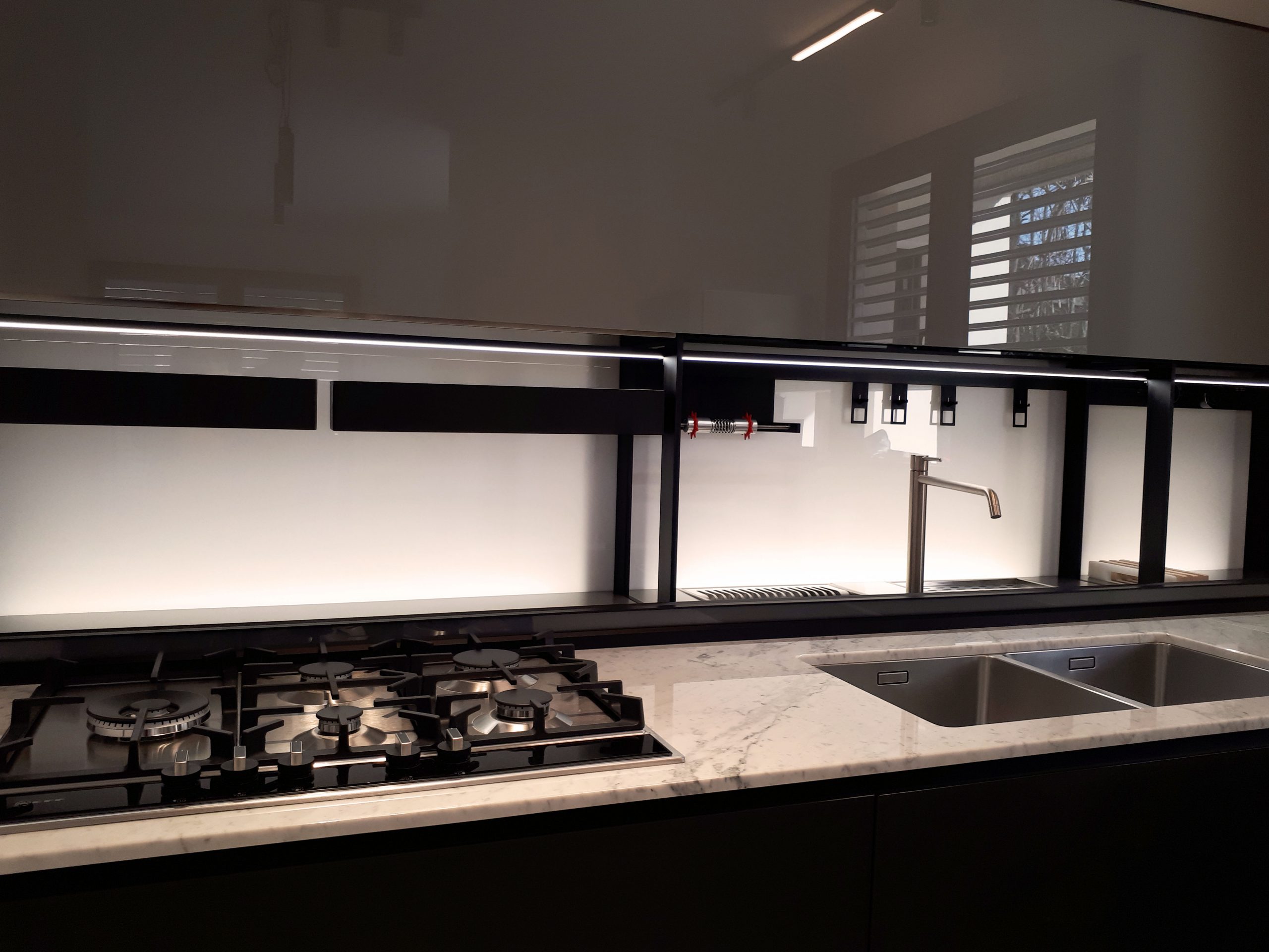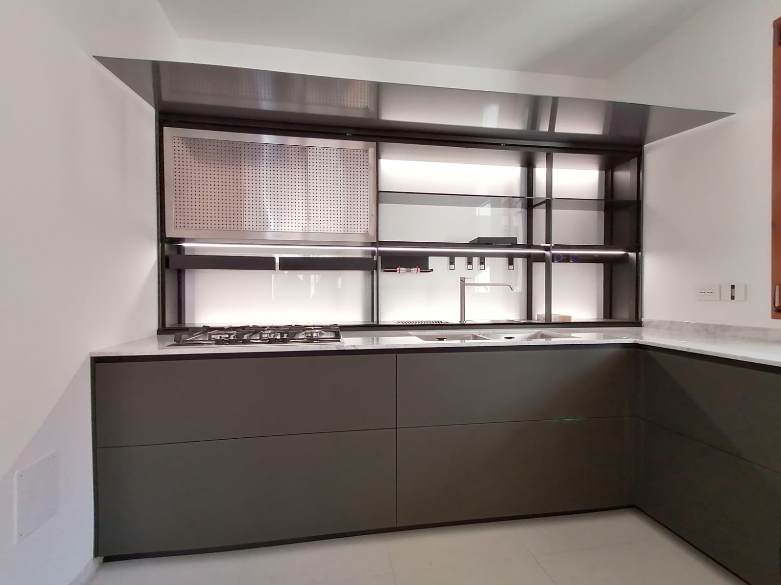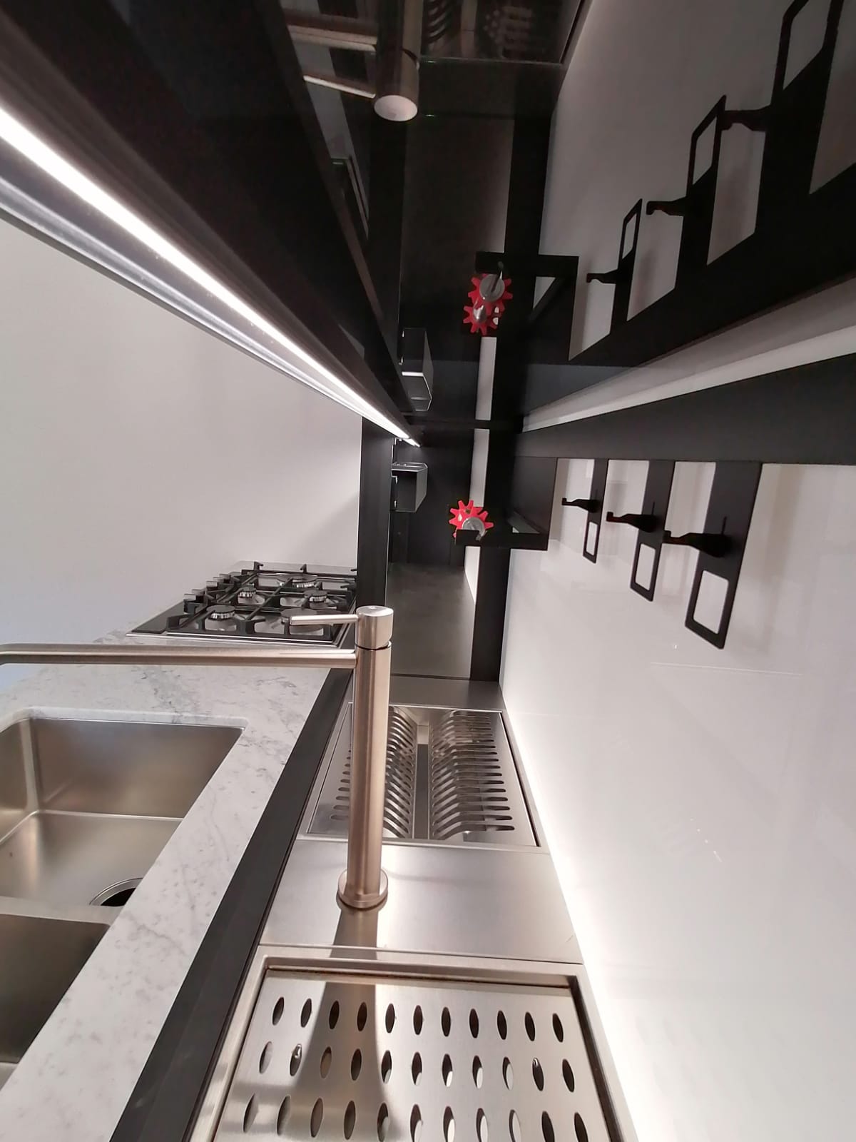 Per la cucina, il cliente ha scelto il modello “Artematica” di Valcucine, attrezzato con il “New Logica System”.