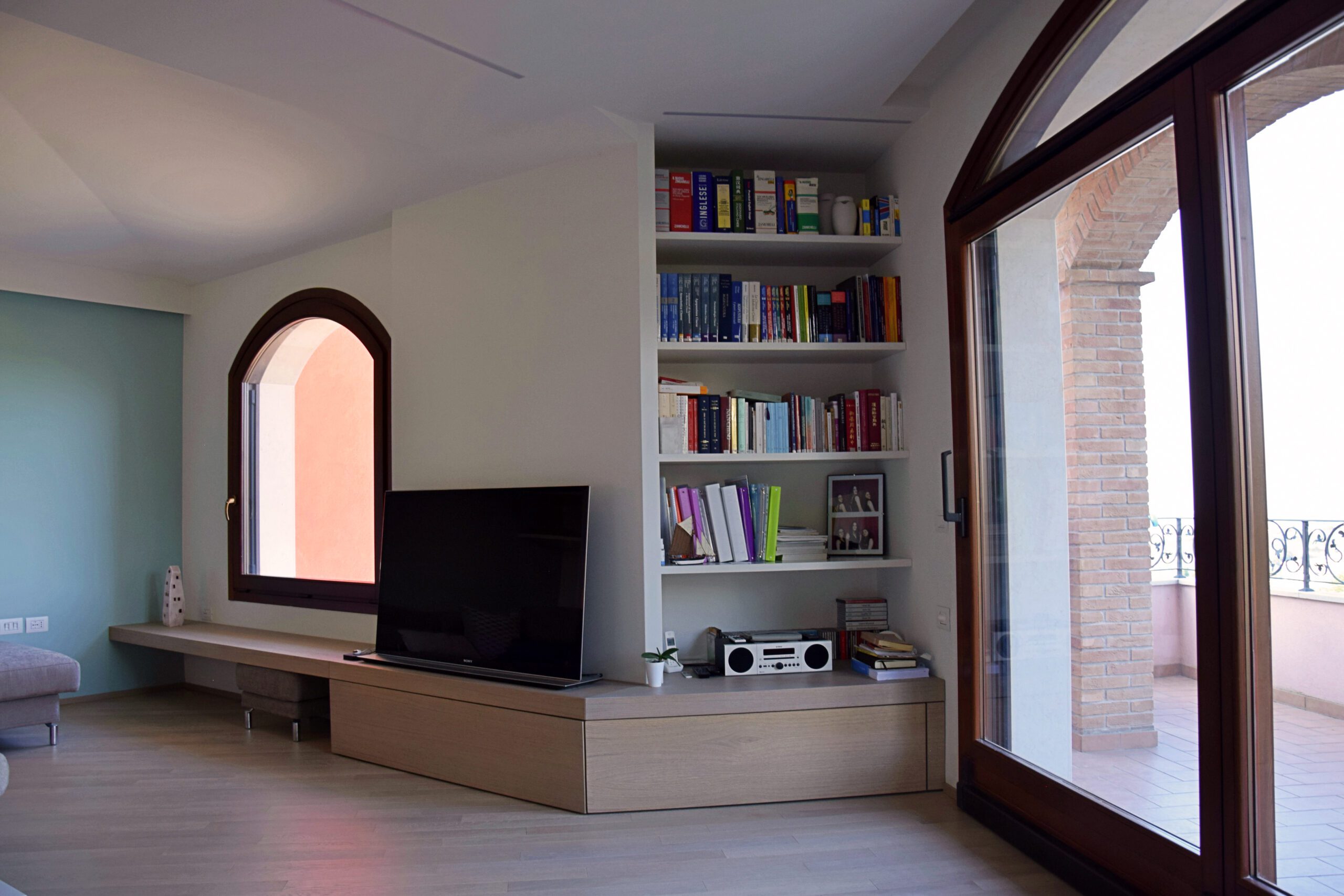 Per questa casa, la collaborazione tra gli architetti ha permesso di creare un arredamento su misura, capace di diventare elemento divisorio dei vari ambienti della casa.