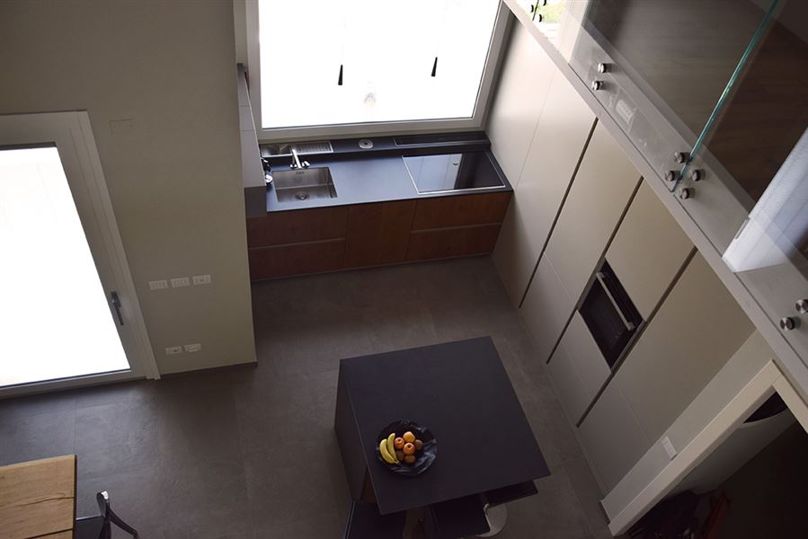 Ad elementi di arredo già esistenti, abbiamo accostato in un progetto unitario i nuovi mobili, come la cucina, la zona pranzo e la zona notte. Il tavolo realizzato nella nostra falegnameria scalda l’ambiente e lo caratterizza fortemente. La cucina è composta da accessori ed elementi di servizio nascosti e su misura che la rendono piacevole alla vista e funzionale.