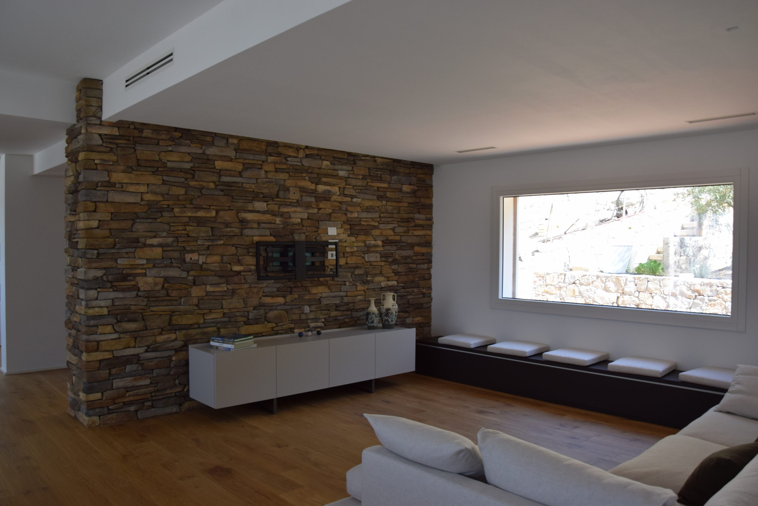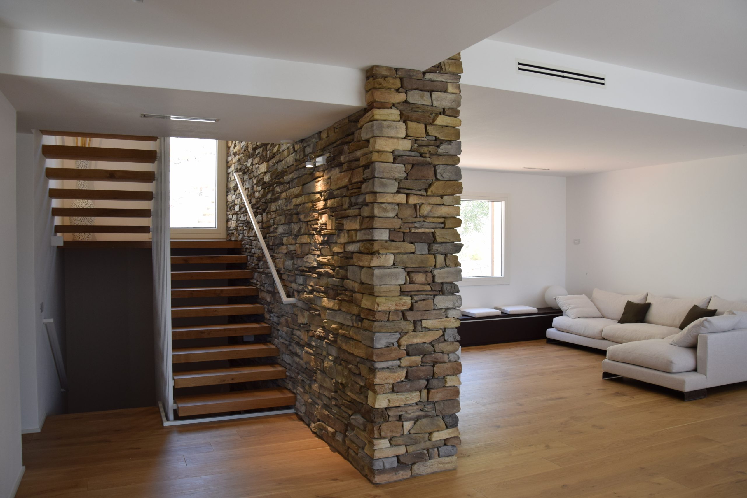 Per dare maggiore carattere agli interni della villa e per renderli perfetti per i suoi occupanti, alle linee pulite dello stile minimal è stato aggiunto un tocco caldo e naturale: agli arredi puri e minimali sono stati accostati dei rivestimenti e dei pavimenti con un’identità più forte, che richiamano in maniera decisa la terra e la sua matericità.
